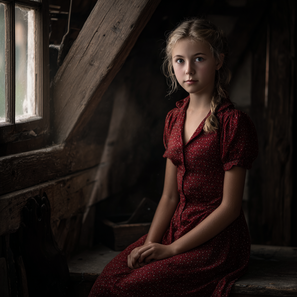 Det krävde en stunds skruvande i AI, men när jag till slut började känna igen Rose i bilden var det inte på grund av enskilda detaljer, utan mer på grund av helheten. Blicken som inte riktigt söker svar. Hållningen som balanserar mellan vaksamhet och stillhet. Känslan av ett barn som redan sett mer än hon borde – men som ändå håller fast vid hoppet.